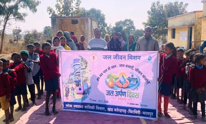 एमसीबी/ 09 जनवरी 2026/ जिले में जल संरक्षण के प्रति जनजागरूकता बढ़ाने के उद्देश्य से लोक स्वास्थ्य यांत्रिकी विभाग द्वारा संचालित जल जीवन मिशन के अंतर्गत 08 जनवरी 2026 को विकासखंड मनेंद्रगढ़ के ग्राम पंचायत पाराडोल स्थित प्राथमिक शाला में ‘जल अर्पण दिवस’ का भव्य आयोजन किया गया। कार्यक्रम में स्थानीय जनप्रतिनिधि, ग्राम पंचायत सदस्य, जल बहिनियां, VWSC सदस्य, पंप ऑपरेटर, ग्रामीणजन तथा बड़ी संख्या में स्कूली बच्चे उत्साहपूर्वक शामिल हुए। कार्यक्रम के दौरान जल जीवन मिशन अंतर्गत पेयजल योजनाओं के संचालन एवं रखरखाव, सुरक्षित एवं गुणवत्तापूर्ण जल के उपयोग तथा जल संरक्षण के महत्व पर विस्तार से जानकारी दी गई। पंप ऑपरेटरों ने जल आपूर्ति व्यवस्था से जुड़े अनुभव साझा किए, जिससे ग्रामीणों को जल प्रबंधन की बेहतर समझ मिली।
