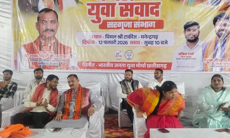 यह बात उन्होंने मनेन्द्रगढ़ के विमल श्री परिसर में आयोजित “युवा संवाद बजट 2026” के अंतर्गत संभाग स्तरीय बजट युवा संवाद कार्यक्रम में मुख्य अतिथि के रूप में कही। कार्यक्रम का आयोजन भारतीय जनता युवा मोर्चा द्वारा किया गया, जिसमें जिले और संभाग भर से बड़ी संख्या में युवा, पदाधिकारी और कार्यकर्ता शामिल हुए। आयोजन स्थल पर उत्साह और संगठनात्मक एकजुटता का माहौल रहा।