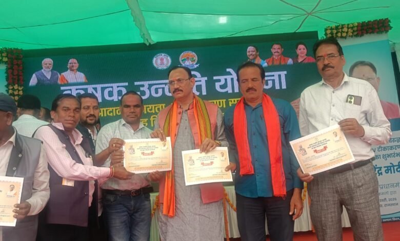 कार्यक्रम के दौरान मंत्री श्याम बिहारी जायसवाल ने कृषक उन्नति योजना “धान बोनस तिहार” के अंतर्गत अनेक किसानों को प्रमाणपत्र प्रदान किए। इस अवसर पर विभिन्न जनप्रतिनिधि, पार्टी पदाधिकारी, प्रशासनिक अधिकारी एवं बड़ी संख्या में किसान उपस्थित रहे।